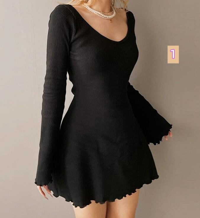 2022春秋新作 女 レディース ハイウエスト 長袖 ミニ ワンピース ドレス 台型スカート S-L