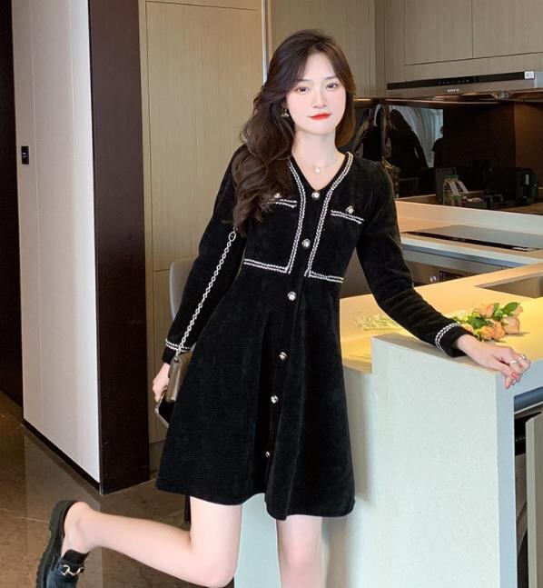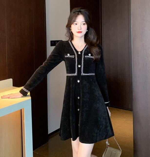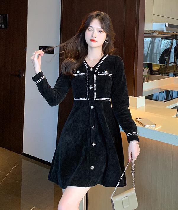 2022春秋新作 女 レディース ハイウエスト 長袖 ミニ ワンピース ドレス 台型スカート S-2XL
