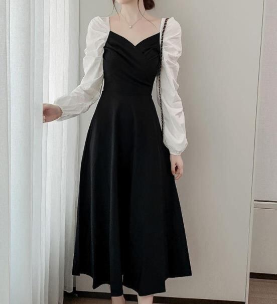 2022春秋新作 女 レディース ハイウエスト 長袖 パフスリーブ ロング ワンピース 台型スカート S-2XL