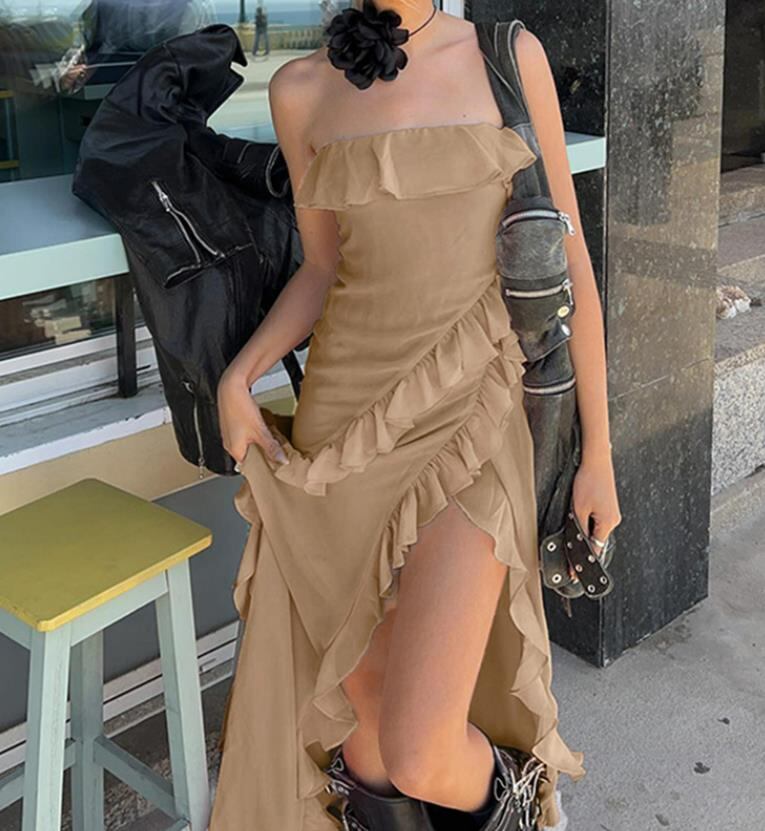 2023春夏新作 女 レディース ハイウエスト 袖なし ロング ワンピース 台型スカート S-L