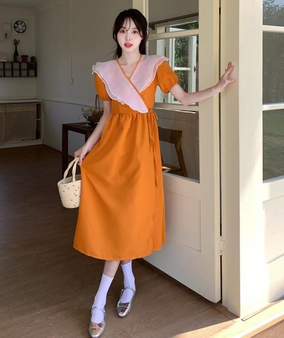 2023春夏新作 女 レディース ハイウエスト 半袖 ロング ワンピース 台型スカート M-2XL