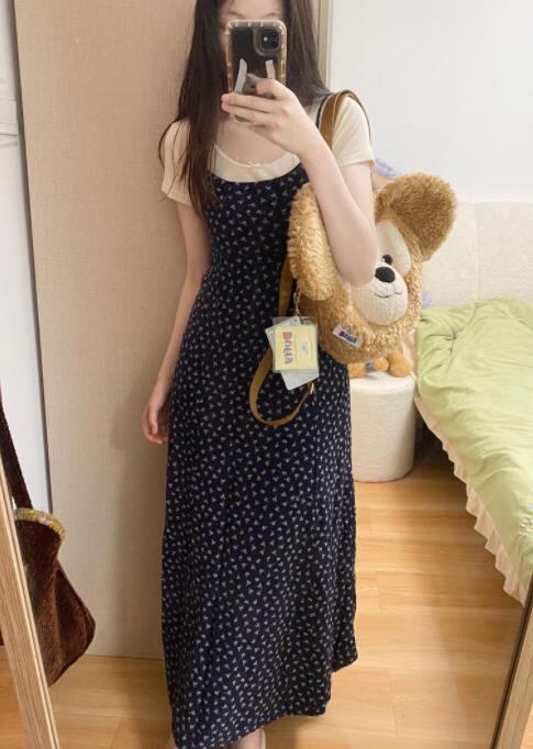 2023春夏新作 女 レディース ハイウエスト 袖なし 吊りスカート ロング ワンピース 台型スカート セット