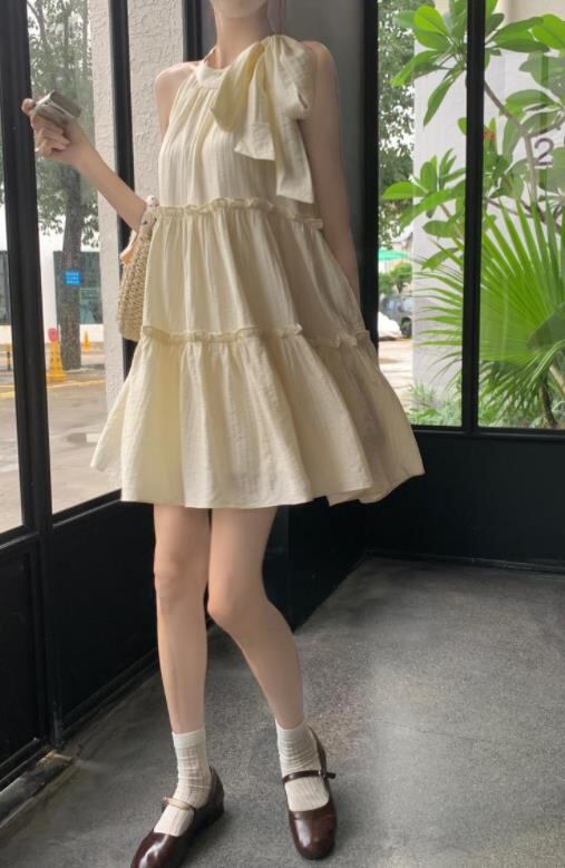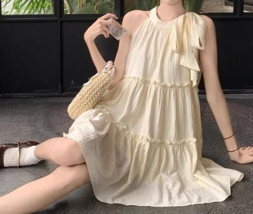2023春夏新作 女 レディース ハイウエスト 袖なし ミニ ワンピース ドレス 台型スカート S/M