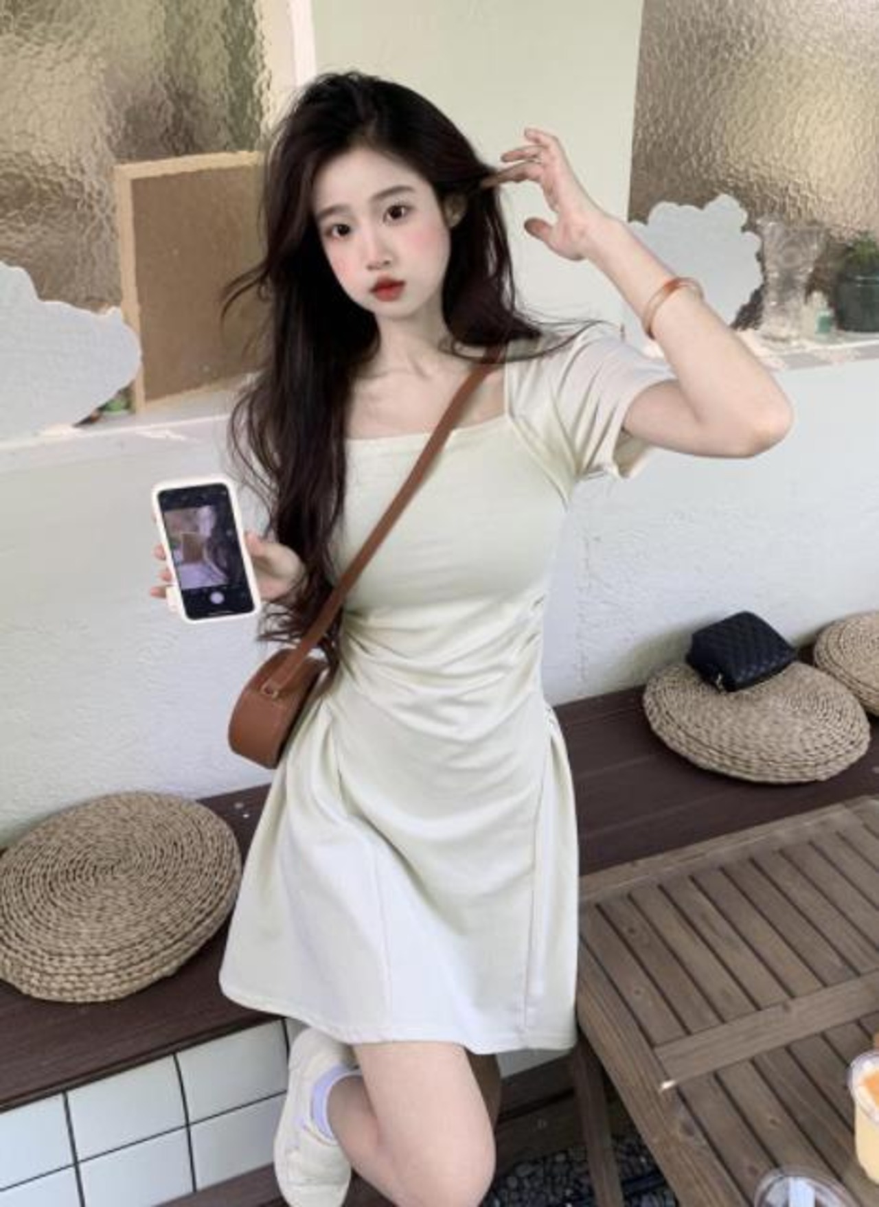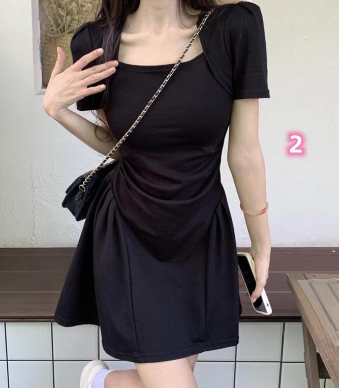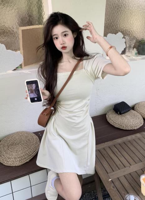 2023春夏新作 女 レディース ハイウエスト 半袖 ミニ ワンピース ドレス 台型スカート