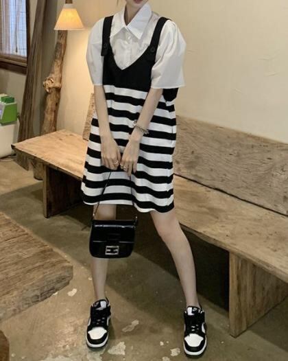 2023春夏新作 女 レディース 袖なし サロペットスカート ミニ ワンピース ドレス 台型スカート セット