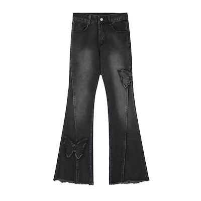 【3日以内に出荷】明るい色バタフライパッチワークジーンズ レディース薄い部分ルーズストレートパンツワイドパンツ