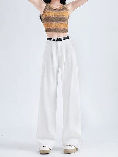 【3日以内に出荷】ニュースタイルホワイトワイドパンツジーンズ レディースプリーツルーズドレープパンツ