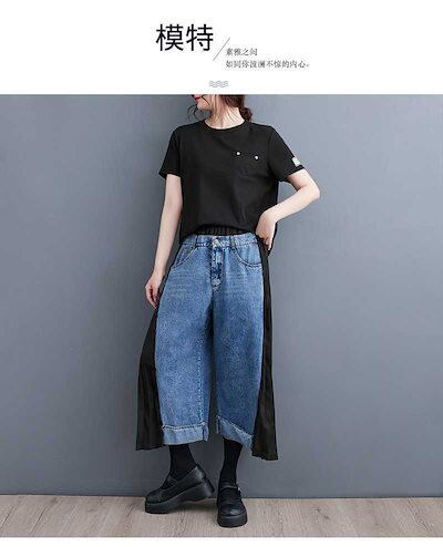 「ファットガール」 秋 九分丈 デニムパンツ ドッキング レトロ プリーツ ワイドパンツ ハイウエスト スラックス レディース ロングパンツ メガ割