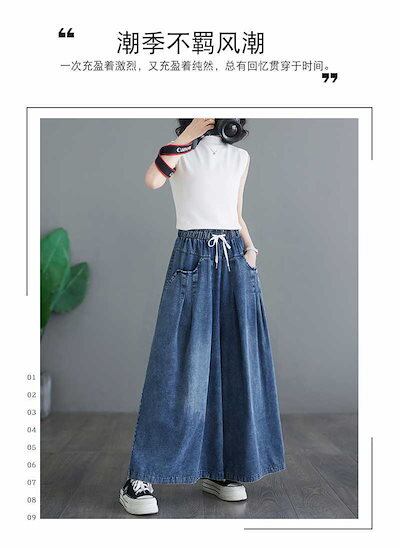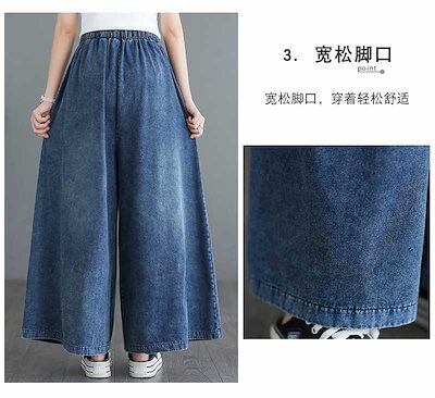 「ファットガール」 2024夏新品 デニムワイドパンツ キュロットスカート フレアー レトロ ゴム ハイウエスト 体型カバー 大きいサイズ ゆったり レディース