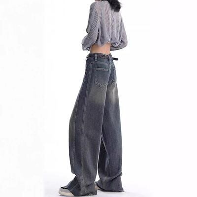 2025 初秋 デニムパンツ パンツ デニム ジーンズ ワイド ストレート ハイウエスト 脚長効果 美脚効果 細見え ウォッシュ加工 カジュアル レディース お出かけ 韓国ファッション | gizshop