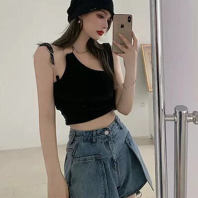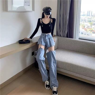 2024 春夏 韓国っぽ 最先端 デニムパンツ ワイドパンツ レディース ズボン ファッション ショートパンツ デザイン カジュアル 韓国系 メンズライク 美脚見え