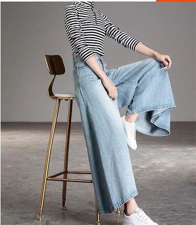 気質 ハイウエスト デニム レディース ロングパンツ 着痩せ 百掛け ワイドレッグパンツ