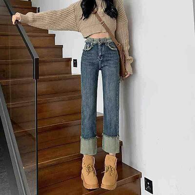 春秋の新作 ガウチョパンツ ハイウエスト 着痩せ 復古 ストレートシリンダ ジーパン ゆとりがある 九分 やせて見える ワイドパンツ レディース