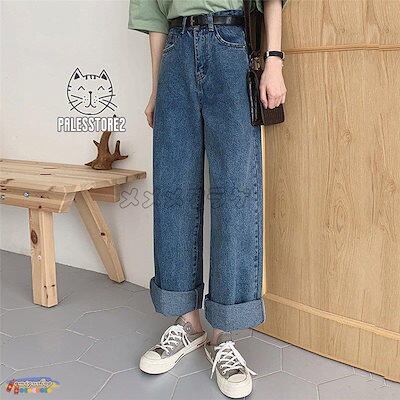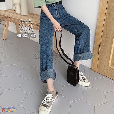 デニムパンツ パンツ レディース ハイウエスト 秋物 ワイドパンツ ポケット付き ストレート 薄手 厚手 ファッション 着痩せ ロング丈 マキシ丈