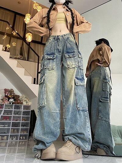 2024秋冬 デニムパンツ ボトムス ハイウエスト ジーンズ K-POP ファッション韓国系スタイル ゆるダボウェア練習ジーンズ シルエット加工ゆったり レディース カジュアル型 春夏 メンズライク