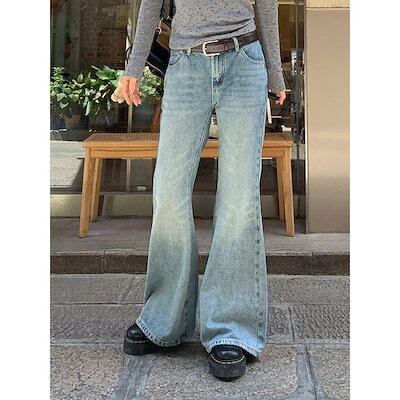 新作 秋 アメリカンハイストリートマイクロラッフルジーンズレディース秋のハイウエストレトロな淡い色のパンツゆったりワイドな足にモップのロングパンツ デニムパンツ メガ割