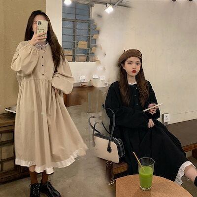 ワンピース レディース ロングワンピース ロングワンピ 無地 長袖 秋 体型カバー 切替 Aライン