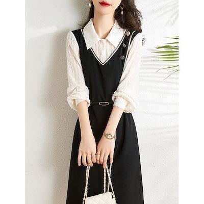 シャツワンピース レディース 40代 キレイめ ロング 可愛い 春 長袖 シャツワンピ Aライン スカート フレア おしゃれ 韓国風 30代 50代
