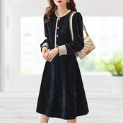 ワンピース レディース きれいめ マキシワンピース 秋冬 長袖ワンピース 黒 フレア Aライン スカ