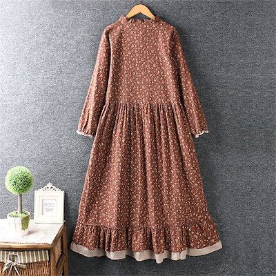 新作登場 ワンピース 花柄 ロングワンピ ワンピ ロングワンピース レディース ロング丈 フレア 長袖 Aライン フリル ギャザー おしゃれ きれいめ 体型カバー 30代