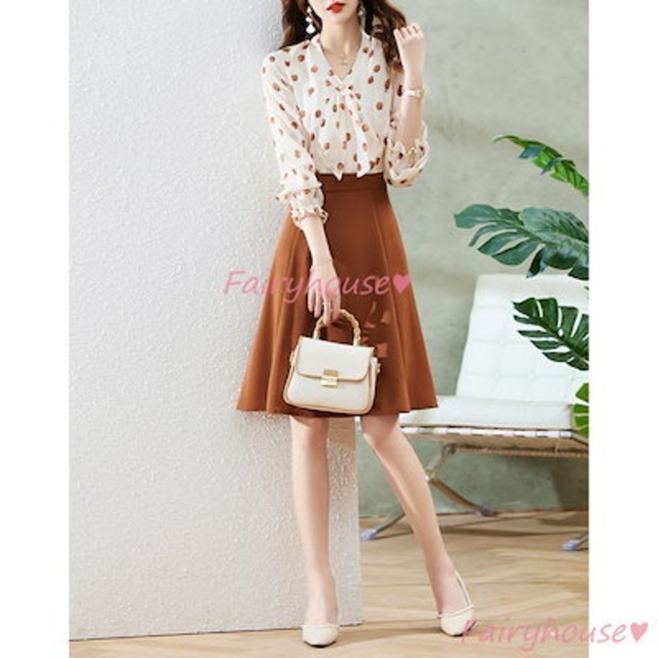 ワンピース レディース 40代 きれいめ 膝丈ワンピース 春夏 長袖ワンピースドット柄 リボンVネック Aラインスカート オシャレ韓国風 大人 通勤OL 結婚式ドレス