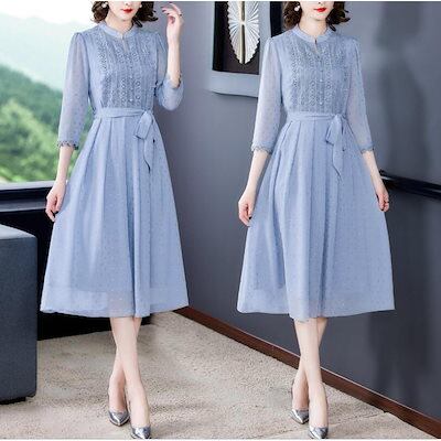 ワンピース レディース きれいめ 結婚式 ドレス シフォンワンピース Aライン パーティードレス 上