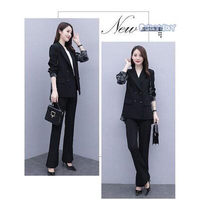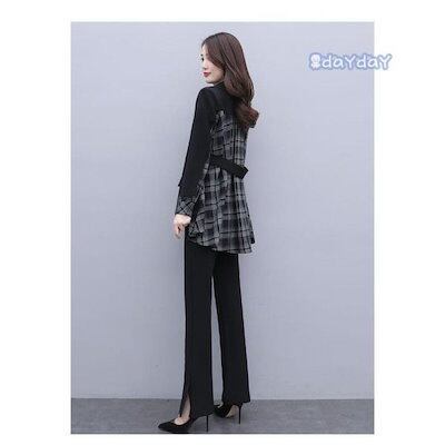セットアップ レディース 40代 秋冬新作 長袖スーツジャケットチェック柄 ワイドパンツ 2点セット 通勤 フォーマル カジュアル オシャレ 大きいサイズ