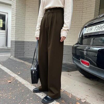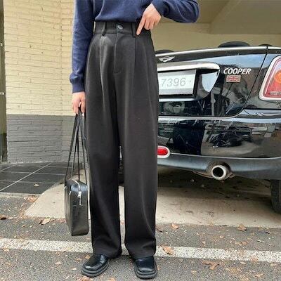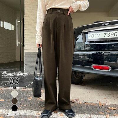 ワイドパンツ ハイウエスト スラックス パンツ タック ボトムス レディース ストレート 大きいサイズ 無地 シンプル オフィス カジュアル かわいい きれいめ 秋