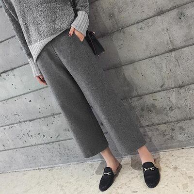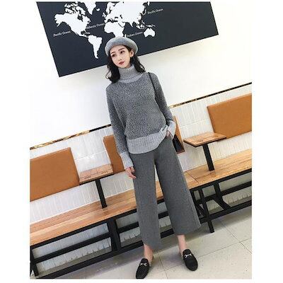 ワイドパンツ レディース 秋冬 九分丈パンツ ラシャズボン ストレートズボン 無地 厚手 ゆったり 大きいサイズ 30代40代50代 カジュアル ボトムス 着痩せ 通勤