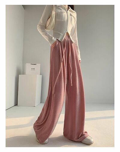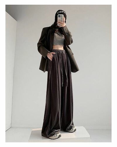 ベロアパンツ レディース ワイドパンツ 春秋 ワイド パンツ 落ち感 光沢感 ロングパンツ ウエストゴム 無地 大きいサイズ ゆったり リラックス 着心地よい カジュアル オシャレ シンプル ファッシ | gizshop