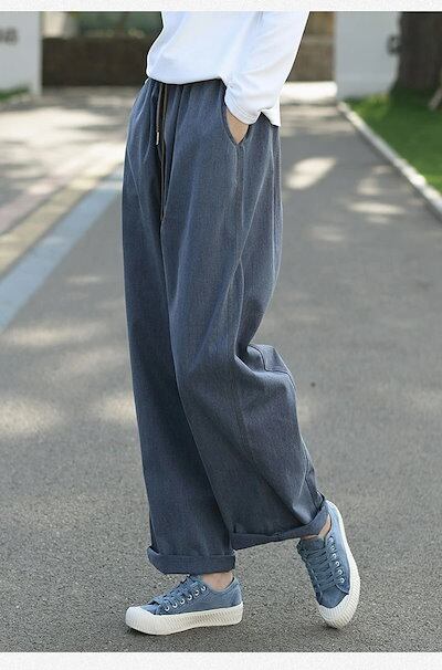 ワイドパンツ レディース イージーパンツ きれいめパンツ コットンパンツ 綿 低身長 高身長 大きいサイズ 無地 ハイウエスト パンツ ボトムス ロングパンツ ゆったり ズボン カジュアル 通勤 仕事 | gizshop