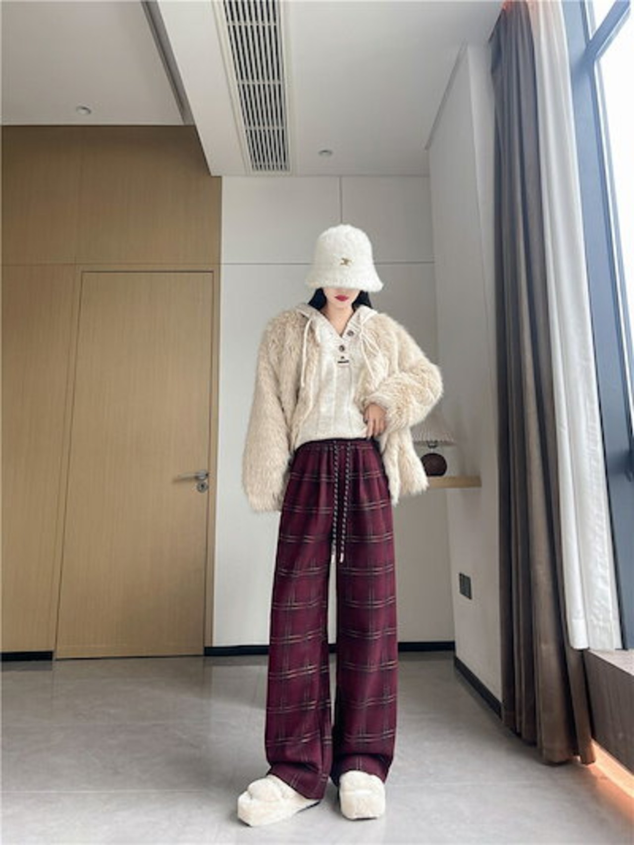 チェック柄ワイドパンツ レディース チェック パンツ 秋冬 裏起毛パンツ ロングパンツ ウエストゴム 大きいサイズ ゆったり リラックス 着心地よい 柔らか ファッション オシャレ 通勤 大人可愛い