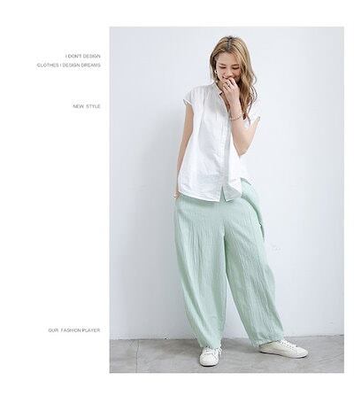 バルーンパンツ レディース 春 ガウチョ チノパン ワイドパンツ コクーンパンツ バギーパンツ イージーパンツ 美脚パンツ 長ズボン ウエストゴム 綿麻風 ゆったり 普段着 大きいサイズ 体型カバー | gizshop