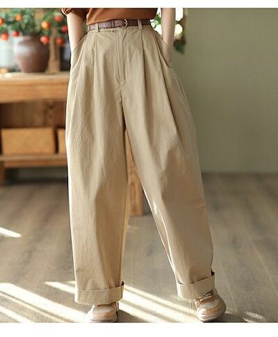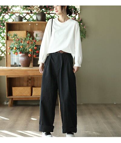 ワイドパンツ レディース 秋 きれいめ ワイドルーズ 綿 バギーパンツ イージーパンツ チノパン 美脚パンツ 長ズボン ウエストゴム ゆったり 通勤 大きいサイズ 体型カバー コットン 大人 ビジネス | gizshop