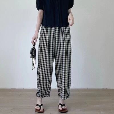 バルーンパンツ レディース コクーンパンツ サーカスパンツ 大きいサイズ 綿麻 パンツ コットンリネン チェックパンツ ワイドパンツ イージーパンツ 大人可愛い ナチュラル カジュアル服 ゆったり ウ