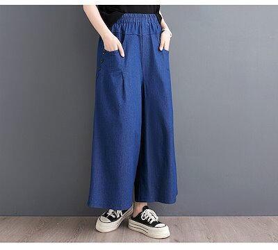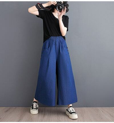 デニムパンツ レディース 秋 薄手 ワイドパンツ 大きいサイズ デニム ボトムス リラックスパンツ ゆったり 体型カバー ストレッチデニム 大人 ウエストゴム ポケット付き 低身長 柔らか 着?せ 美 | gizshop