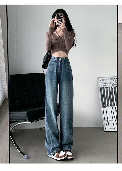 ストレートワイドパンツ デニムパンツ レディース パンツ ジーパン 大人カジュアル デニムワイドパンツ ボトムス ロング 長ズボン ジーンズ ハイウエスト 大きいサイズ ゆったり 体型カバー 柔らか | gizshop
