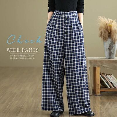 ワイドパンツ レディース きれいめ チェック パンツ 秋 ワイドパンツ レディース パンツ チェック柄 ロングパンツ 大きいサイズ ゆったり 体型カバー リラックス 着心地よい 柔らか ファッション | gizshop