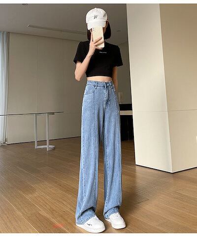 ワイドパンツ レディース デニムパンツ センターラインデザイン ストレートパンツ 薄手 接触冷感 デニム パンツ 涼しい ボトムス ロングパンツ ジーンズ 大きいサイズ ゆったり 体型カバー 大人 楽 | gizshop