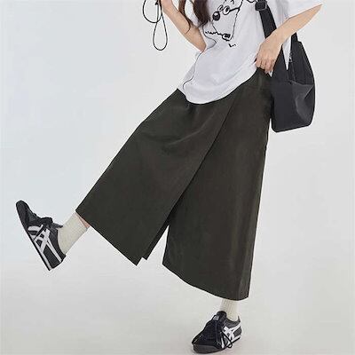 ワイドパンツ レディース ガウチョパンツ 巻きスカート ラップスカート 9分丈 カフェパンツ 春 夏 春夏 涼しい ボトムス 無地 シンプル ゆったり 体型カバー ウエストゴム 大きいサイズ 可愛い | gizshop