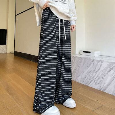 パンツ レディース 春 秋 冬 起毛 ワイドパンツ イージーパンツ ボーダー柄 着痩せ 防寒 起毛パンツ 暖かい リブパンツ ウエストゴム ボトムス ニットパンツ 中厚手 ゆったり 大きいサイズ ロン