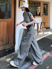 春 韓国ファッション ハイウエスト デニムパンツ レディース スーツ設計感 百掛けゆったり ワイドパンツ 美脚着痩せ ボトムス カジュアル大きいサイズ 体型カバー? 気質カーゴパンツ