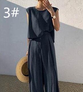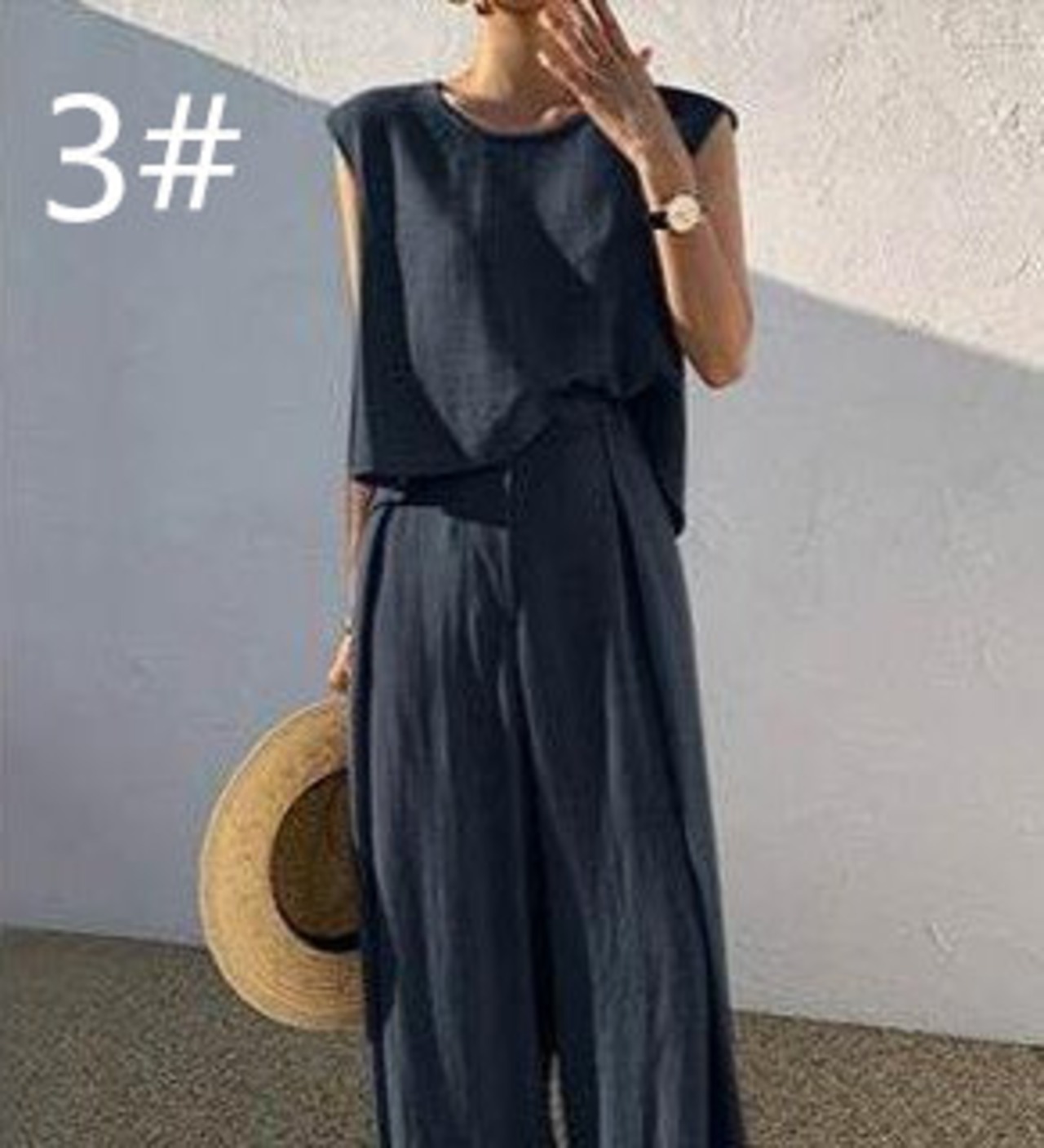 2022春夏新作 ノースリーブ トップス ワイドパンツ 2点セットアップ 韓国風 レディース カジュアル