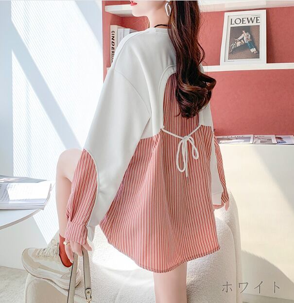 全2色 スウェット トレーナー フェイク 切り替え バイカラー 体型カバー 着痩せ カジュアル