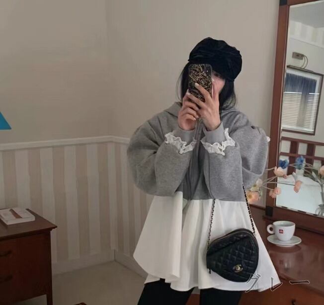 全2色 スウェット トレーナー 切り替え 体型カバー 着痩せ カジュアル