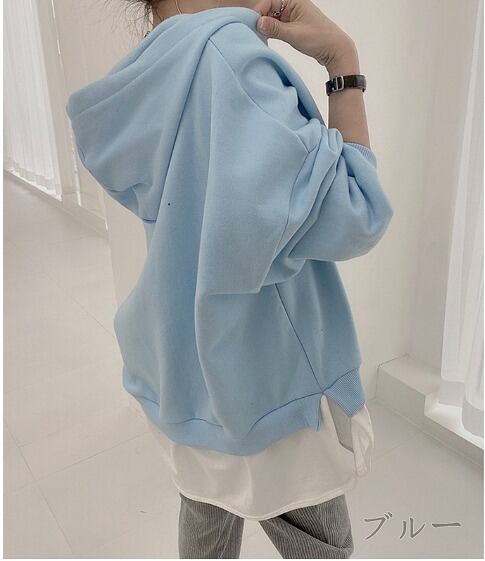 全3色 スウェット トレーナー 長袖 切り替え 体型カバー 着痩せ シンプル カジュアル