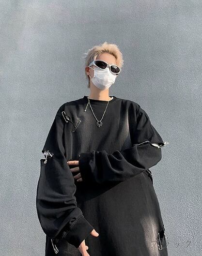 スウェット トレーナー ダメージ加工 切り替え 体型カバー 着痩せ 【大きいサイズあり】 原宿系