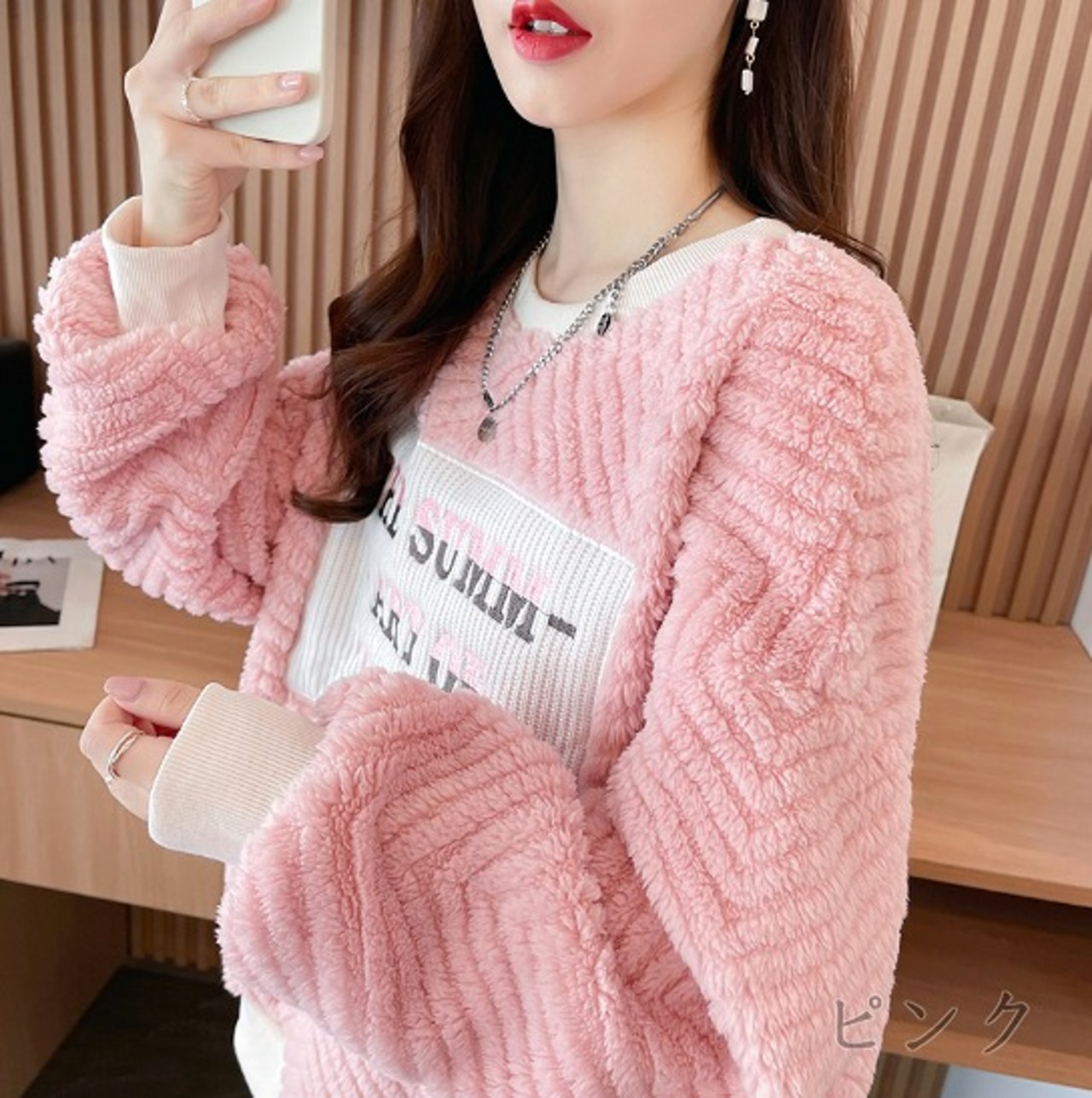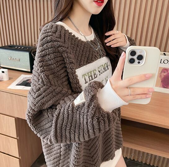 全2色 スウェット トレーナー 裏起毛 長袖 体型カバー 着痩せ 切り替え カジュアル