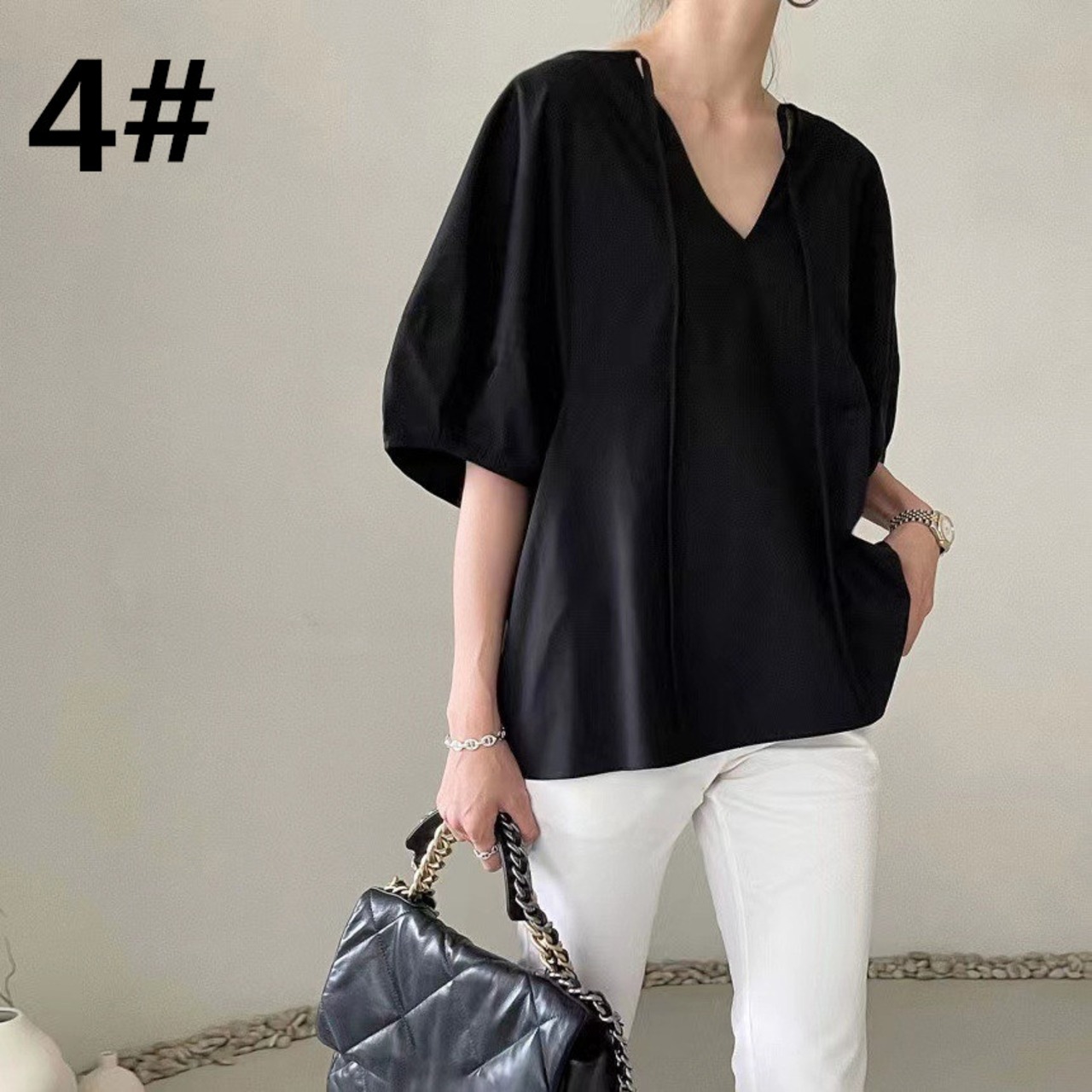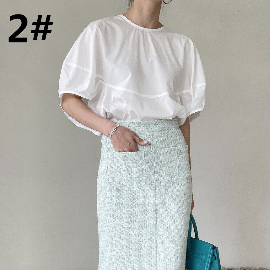 2023夏新作 トップス ラウンドネック 半袖 体型カバー フレア袖 レディース