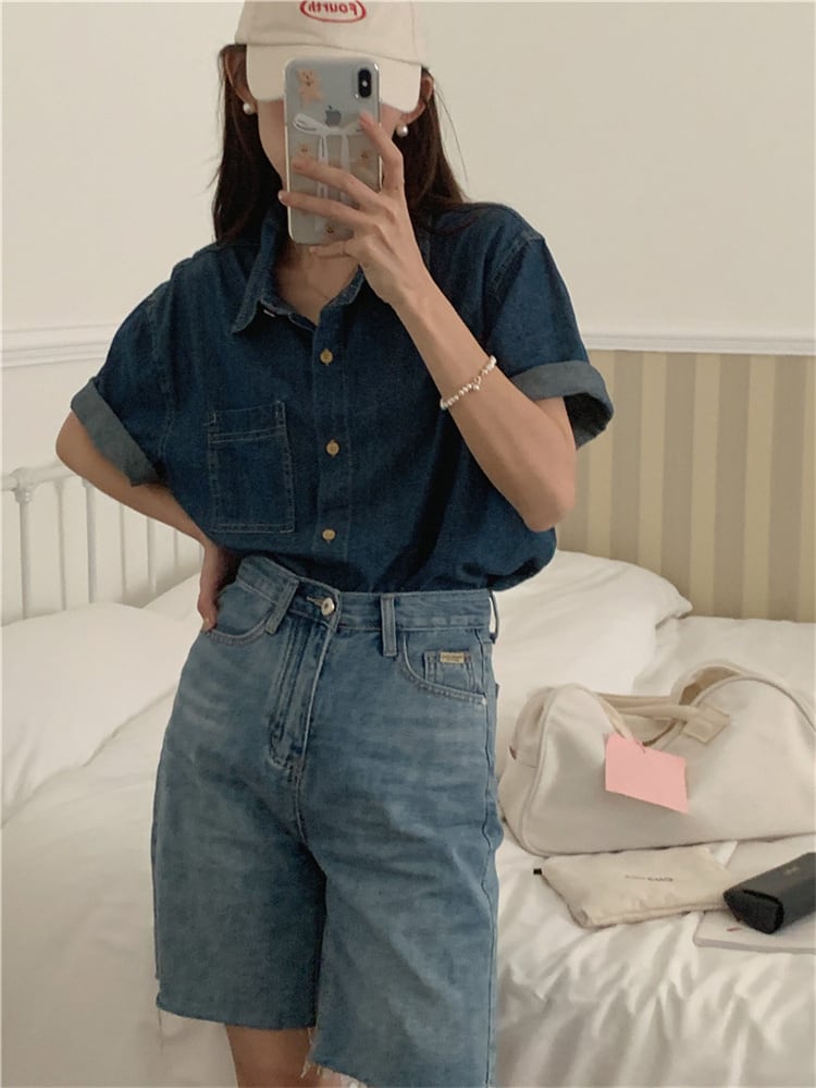レビュー続々 半袖ブラウス 快適である スリム 気質 トレンド デニムシャツ トップス 新品